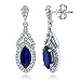 【EARRINGS】 Features 2 ct.tw (1ct per earring) simulated blue sapphire marquise cut cubic zirconia (10mm x 5mm) in prong setting. Accented with 0.5 ct.tw CZ. Earring measures 1"(L), 0.3"(W). Edge posts with butterfly backs.