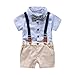 Includes : 1 blue onesie ,1 beigeoveralls,1 bowtie,1 suspender.