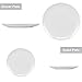 What's in the box: Service for 4, includes 4 of each of the following: 10.5” dinner Plates, 8.5” dessert plates and 23 oz soup/cereal bowls. Suitable for family dinners, food storage, restaurant service, party entertaining, and holiday gifts.
