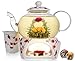 DISTINCTIVELY BEAUTIFUL: This exclusive Teabloom design combines beautiful materials and design. Crystal-clear glass allows you to watch the drama of blooming tea. The pure porcelain tea infuser, warmer base, and vented lid are hand-painted with a unique botanical cherry blossom design.