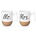 Novelty His and Hers coffee mugs - Mr and Mrs coffee mug set of 2, cork bottom ceramic mugs set 10.5 oz (300 ml) with unique and high quality printing of Mr for the man and Mrs for the women,guaranteed to last.