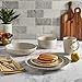 STONEWARE MATERIAL: This dinnerware set is made from the finest stoneware, finished with a natural glaze for a sleek and smooth feel. Stoneware has a heavy quality, strong and elegant, which gives each plate a classic style designed to last for years to come. Combining convenience, durability, and style, this dinnerware set is ideal for outdoor parties, elegant dining, and everyday use.