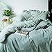 【Green Ruffle Duvet Cover Set】: Vintage farmhouse style Solid sage green duvet cover decorated with simple and lovley ruffle lace tassel, romantic and elegant, light up your bedroom, make your princess dream come true. After a special process, wrinkles in a slight degree on farmhouse style duvet cover reflect a sense of old materials and vintage modern look. It is also a great gift idea for women, girls on birthday, wedding, Christmas and Thanksgiving.
