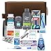 TRAVEL ESSENTIALS: This 20-piece travel kit contains the following travel size toiletries and travel accessories: Barbasol Shave Cream, Gillette Good News Disposable Razor, Dove for Men 2 in 1 Shampoo + Conditioner, Dove for Men Antiperspirant Deodorant, Gold Bond Powder, lip balm (assorted flavors), comb, Crest Toothpaste, Colgate Adult Soft Toothbrush, toothbrush cap, Colgate Total Mouthwash, Dentek Dental Flossers, Advil Caplets, Curad Finger Strip Bandages, toe nail clipper with file and vanity pack (cotton swabs, cotton balls, and cotton rounds)