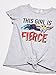 Screen print design featuring the iconic Wonder Woman multicolored logo with the words "this girl is fierce"; All-over print design on shorts and pants featuring stylish stars, the Wonder Woman logo, and the word "fierce"