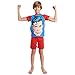 Officially licensed DC Comics Justice League toddler boys cool and stylish short sleeve swim shirt top and cute and stylish swimming shorts bottoms