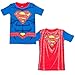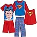 Justice League Superman little boys mix n match pajama set features long sleeve and short sleeve graphic pajama shirt, cozy pajama pants and shorts with matching velcro cape