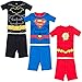 Three officially licensed DC Comics little boys cute and stylish short sleeve pj tops with matching pajama bottoms