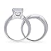 【METAL】 This solitaire with side stones wedding engagement 2 piece ring set is crafted with fine real solid sterling silver, stamped 925, plated with rhodium to enhance shine and durability. Layer on this stackable ring for the ultimate effortless style. SIZING TIPS: This ring's band width is wide, so we suggest you choose a ring size 1/2 or 1 size larger than your standard ring size to make sure the ring will fit comfortably.