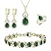 ♥MATERIAL♥: This jewelry set is gold plated alloy, highly polished,nickel-free, lead-free, non-allergic. The main stone is created-emerald and the side stone is clear cubic zirconia. These stones are durable, scratch-free, defect-free, and specially constructed to ensure they won't fall.