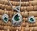 SPECIFICATIONS - 1) Pendant Size: 1.5" x 0.8" 2) Earring Size: 0.6" x 0.5" 3) Chain Length: 18" + 2"extender 4) Chain: White Gold Plated Vintage Silver-tone Alloy Chain 5) Clasp: Lobster Claw 6) Stone: Crystal, Pear Shape Teardrop Stone, Emerald Green, 7) Earring Hooks: Omega Clips