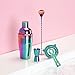 ESSENTIAL BARWARE TOOL SET - This bar kit bar features four of the most important bar tools: a shaker, jigger, strainer, and spoon that doubles as a muddler in a flashy rainbow finish. Perfect for a budding bartender or seasoned mixologist.