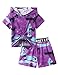 🌞Features: 2 pieces hooded shirt with shorts, crop tops with tie-dye hoodies + high waist sweatpants, two side pockets. Tops with a drawstring for more styling. And the shorts are elastic waist designs making kids more convenient and comfy.