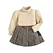 Fashion Design: There are different styles for you to choose from Ruffled Top, Button Design & Plaid Bottom Skirt Set, Mock Neck & Puff-sleeve Top, Houndstooth & Pleated Bottom Sweater Skirt for little gilrs, Ruffled & Textured Top, Button Design & Belted Bottom baby girl skirt set and Ruffled & Long-sleeve Top, Plaid Skirt & Cap fall skirt set for girls