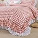 🐦🐦🐦【Vintage Design】Pink grid bedding, good quality dog tooth printed pattern, matching high quality lace edge bedskirt, improving the art feeling, showing your high quality life taste, the best choice for your bedroom decoration. Not only that, it's a Great Gift Idea for weddings, anniversary, festivals, holidays, birthdays, etc.