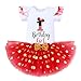 ♣ 【First Second Third Birthday】Adorable solid color tops with lovely polka dots special shiny letters "1st/2nd /3rd birthday girl"and cute ear printed,70'S 80's vintage retro tutu style,white and red patchwork,color block,elastic waistband tulle glittering sequin bowknot skirt,3 snap buttons at the crotch,easy to put on and take off,super cute outfit for little one princess!This cartoon fancy costume is perfect for your upcoming trip to a certain theme park