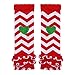 ✿【Baby Girl Christmas Bodysuit Outfit】short sleeve romper printed with special festive shiny letters print, Lapped shoulder is easy to put on, 3 snaps on the crotch is convenient to change the diaper. Elastic waist tutu skirt, tulle tutu skirt decorated with glittering sequin bowknot.Matched with sequin bowknot headband, striped ruffle layered leg warmers, quite adorable and fashionable.
