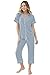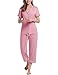 🌙Short sleeve pj top features notch collar, full button down and front pocket;capris pajama bottoms features elastic waistband and drawsring.