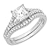 A resplendent antique style wedding ring set for your elegant bride to be with the finest of taste. Featuring a lustrous Asscher cut cz stone engagement ring with shimmering cz accents. Complements perfectly with gleaming cz encrusted sterling silver band. HYPOALLERGENIC - Lead free Nickle-free. Each piece is stamped .925 guarantees the quality and craftmanship.