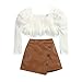 ✿Product Included: 1 pc little girl puff sleeve crop blouse top+1 pc faux leather skirt