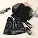 ❤ Feature: 2 Pieces Kids Baby Girls Spring Autumn Outfit Set, Round Neck Pullover, Polka Dot Stitching Mesh Puff Sleeve Blouse Top, Leather Patchwork Pleated Skirts with Belt, which is easy to match with all kinds of clothes
