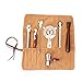 Canvas Cocktail Kit: Polish your bartending skills with this canvas roll up kit; It is equipped with a jigger, strainer, wood wrap truetap, channel knife/zester, bar spoon, ice tongs and wood muddler.