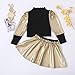 [Material]: toddler girl long sleeve shirt skirt set,tops made of cotton blend,skirt made of Faux PU.great quality and comfortable to wear it.