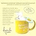 Bold design. This handcrafted Dayna Lee large coffee cup has a vibrant yellow color and the inspirational handwritten quote: "Morning Sunshine" engraved on both sides. The C-shape handle allows for a good grip while the white mug coating on the inside is food-safe and dishwasher-safe, making it easy to clean and maintain for everyday use