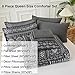 💜WHAT IN THE PACKAGE:Boho Queen Size Comforter Bed in a bag includs 1 grey comforter (90"x90"), 2 pillow shams (20"x26"), 1 Queen Fitted Sheet (60"Wx80"L+12"), 1 Queen Flat Sheet (90"Wx102"L), 2 Standard Pillowcases (20"Wx30"L). The fitted sheet is 12 inches Pocket, fits mattresses up to 12"