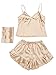 Cami top and shorts set pjs: Adjustable strap sleeveless camisole top, elastic waist wide leg shorts. Soft summer sleepwear outfit for women.