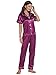 Two piece satin pajamas set featuring with a button front short sleeve shirt and a pair of shorts.