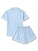 Notch neck button front shirt top with a chest pocket, elastic waistband shorts with tie bow decoration. Summer V neck shorts lounge set for women and girls.