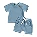 DESIGN: Waffle knit, solid color. Tops: Short sleeves, crew neck, button front. Shorts: Elastic waistband, side pockets, rolled cuffs. Classic t-shirt and short pants, casual and chic style. Your little one will get lots of compliments with this baby summer outfits.