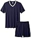 Men's short sleeve pjs 2 piece for you design contrast color V neck short sleeves with 2 side pockets of 5"shorts, appear more casual fashion.