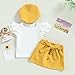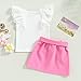 Pullover Flare Ruffle Short Sleeve Tee T Shirts Tops, Button Front Design, Classic A Line Mini Skirt with Pockets, Belt and Beret Hat, Fashion and Cute Sleeveless 3 Piece Summer Skirt Sets Outfit, Infant Baby and Toddler Girls Birthday Party Outfits Clothes