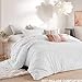 Twin size 2 piece Comforter Set:1 comforter (68x90 inches) and 1 pillowshams (20x26 inches). Elegant Design - This sophisticated set features a seersucker stripe detail, great for your bedding décor. You may also use this comforter set or duvet insert for guest room or as a gift for wife mother or girl friends. It is nice stylish bed set for men or women for morden farmhouse rustic bedroom.