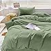 The queen size olive green comforter set 3 piece includes 1 duvet insert or stand-along comforter (90 x 90 inches) and 2 matching pillow shams (20 x 26 inches) Elegant Design - Stylish and modern, great for your bedding décor. You may also use this comforter set for guest room or as a gift for family members or friends to present your good taste. It is cute bedding set for men or women.