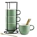 Ceramic Coffee Mug: Stackable coffee mugs with rack consists of 4 green cups, 4 gold metal spoons and a black metal stand. You can use the tea cup with the spoon, which is both beautiful and functional. When not in use, they can be stacked for easy storage and space-saving.