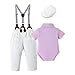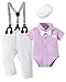 【Stylish Design】: Baby suits for boys are designed with a adjustable suspender pants and detachable bowtie.romper with a convenient snap, easy to change diapers. It allows more different wearing styles. Putting on the beret, just more like a real little gentleman!