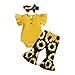 Design: Newborn girl clothes. Ruffle sleeve, Sleeveless, front button, crew neck design, snap closure for easier diaper changing, solid color ribbed knitted romper top matching with sunflower print/ leopard print/stripes print flared bell-bottom pants, baby girl summer outfits. Very adorable and fashionable.your baby will love it.