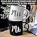 Novelty His and Hers coffee mugs - Mr and Mrs coffee mug set of 2, cork bottom ceramic mugs set 10.5 oz (300 ml) with unique and high quality printing of Mr for the man and Mrs for the women,guaranteed to last.