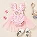 BABY GIRL ONE PRINT LACE ROMPER - Newborn infant baby girl ruffle short sleeve lace floral rompers dress one-piece playsuit jumpsuit bodysuit letter one printed first birthday cake smash outfit, summer sunsuit casual party photo shooting clothing photo props. Solid color lace tutu tulle overall, simple and cute, good gift choice for your little sweetheart