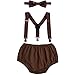 MATCHING SHORTS AND SUSPENDERS --- Matching solid color shorts with elastic waistband for comfy fitting. Plus with suspenders, Y Back, adjustable design with 3 strong clips and 2 length adjusters, easy to open clip, enough strength to hold pants up tightly. Cake smash outfit boy first birthday party photography prop casual daily wear baby boy smash cake outfit
