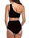 Design: 2 pieces sporty swimsuits: One shoulder bikini top with high waiested bottom;