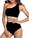 Sexy single shoulder crop bikini top,high waisted bottom.