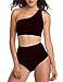 2 Piece Swimsuit for Women: Royal blue ribbed bikini features a one-shoulder bikini top and classic high waist bottom. The special textured fabrics gently enhance your body curves.
