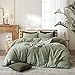 Material: 100% Washed cotton sage green duvet cover set, soft breathable touch, get a comfortable sleep.