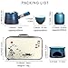 PACKAGE: 1x Blue kiln glazed teapot, 4x Tea cup, 1x Tea warmer (candle not included), 1x Tea canister, 1x Clip, 1x Tea mat, 1x Bag. Small warmer ensures that your tea remains at the ideal temperature and can also serves as your coffee and milk cup warmer