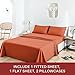 4-piece QUEEN bed sheet set: includes 1 Flat Sheet (102" x 90"), 1 Fitted Sheet (60" x 80" + 12"), and 2 Pillowcases (20" x 30"). Fitted sheet features elastic all around, not just in the corners, fitting mattresses up to 12" deep.