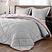 ONE COMFORTER, TWO MOOD. The Pink and Grey reversible design Comforter Set can be reversed depending on your bed sheets and your mood. The Lightweight Bedding Comforter Set also has 4 corner tabs to anchor duvet cover and can be used as a duvet insert or a stand alone blanket comforter.